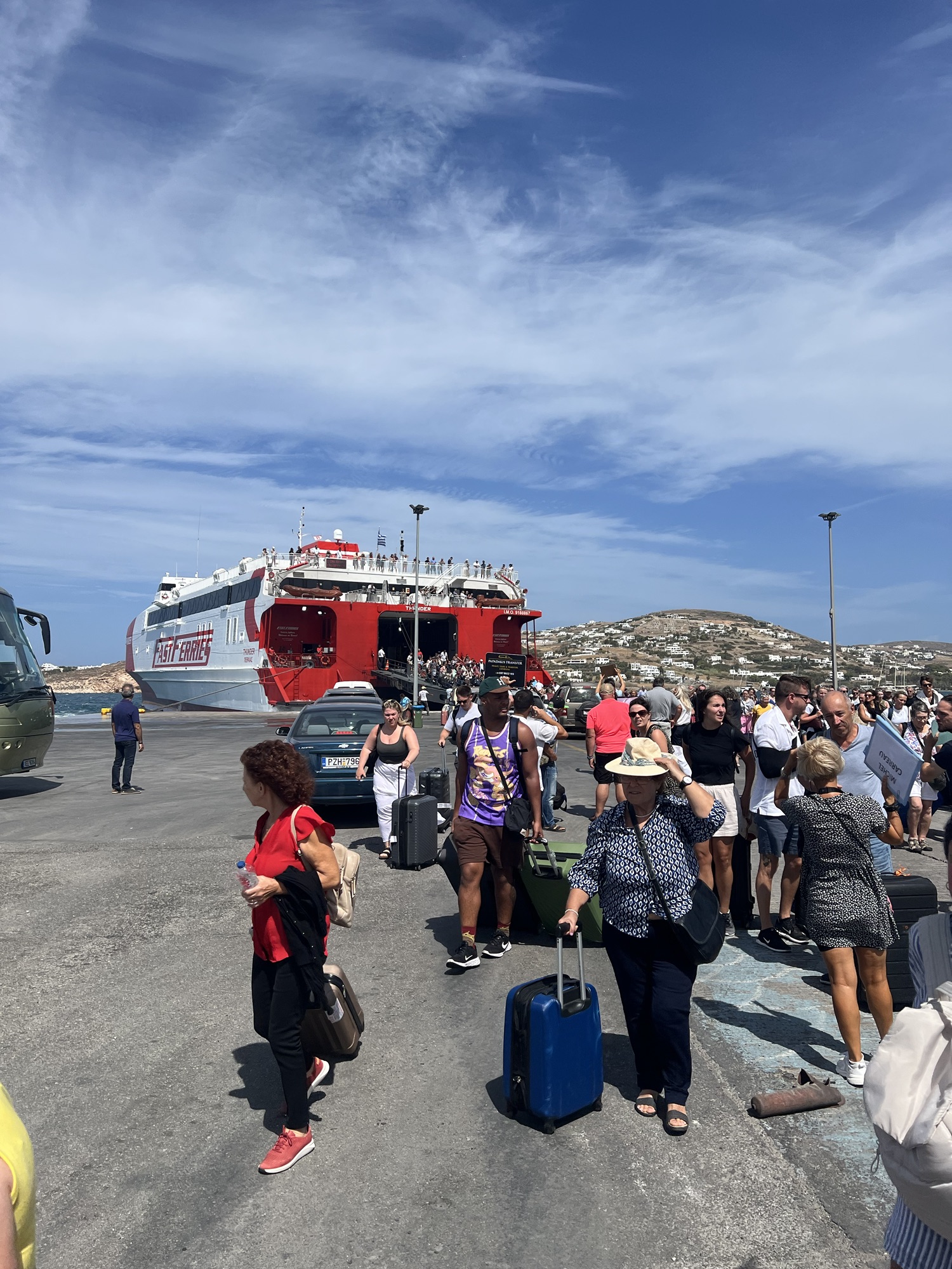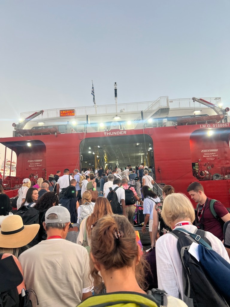 Now that my family and friends all have power again and most of the damage is being dealt with, I have a clear head and want to update on my adventures. As you know, my travel girls came to visit Crete, and I played tour guide. After a few days of island hopping, I was able to clock out and play tourist. We wanted to avoid the expense and crowds of Santorini and Mykonos. I had heard Paros and Naxos were 2 islands we should check out; they are about 30 mins apart, so we decided to do both. We booked a hotel on Paros for 4 nights and decided to see Naxos as a day trip. This was my first time taking the Greek ferries since my honeymoon, aside from the overnight ferry we took when we moved here. We used the website Ferryscanner.com to book our tickets. It’s a great website that works with all of the ferry lines so you can see all of your options in one place.