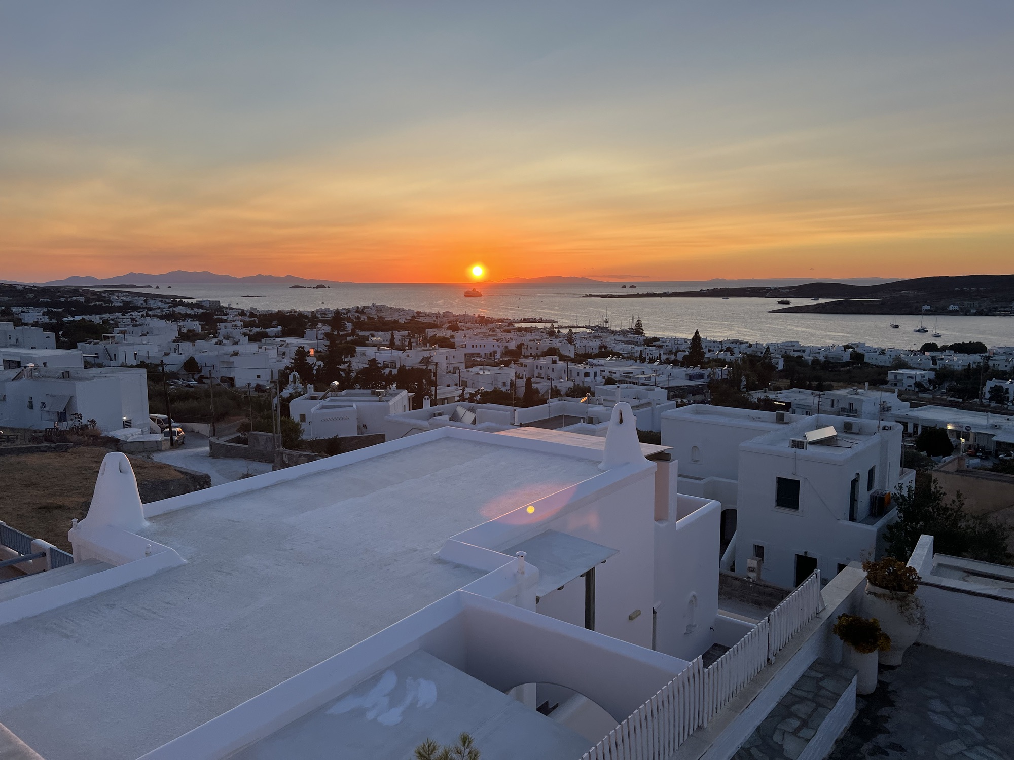 We arrived on Paros and found our hotel to be lovely. It was a bit outside the main port area but we wanted larger rooms so everyone could have their own space and SunsetViewHotelParos was perfect. We had a hot tub on our porch and the views did not disappoint!