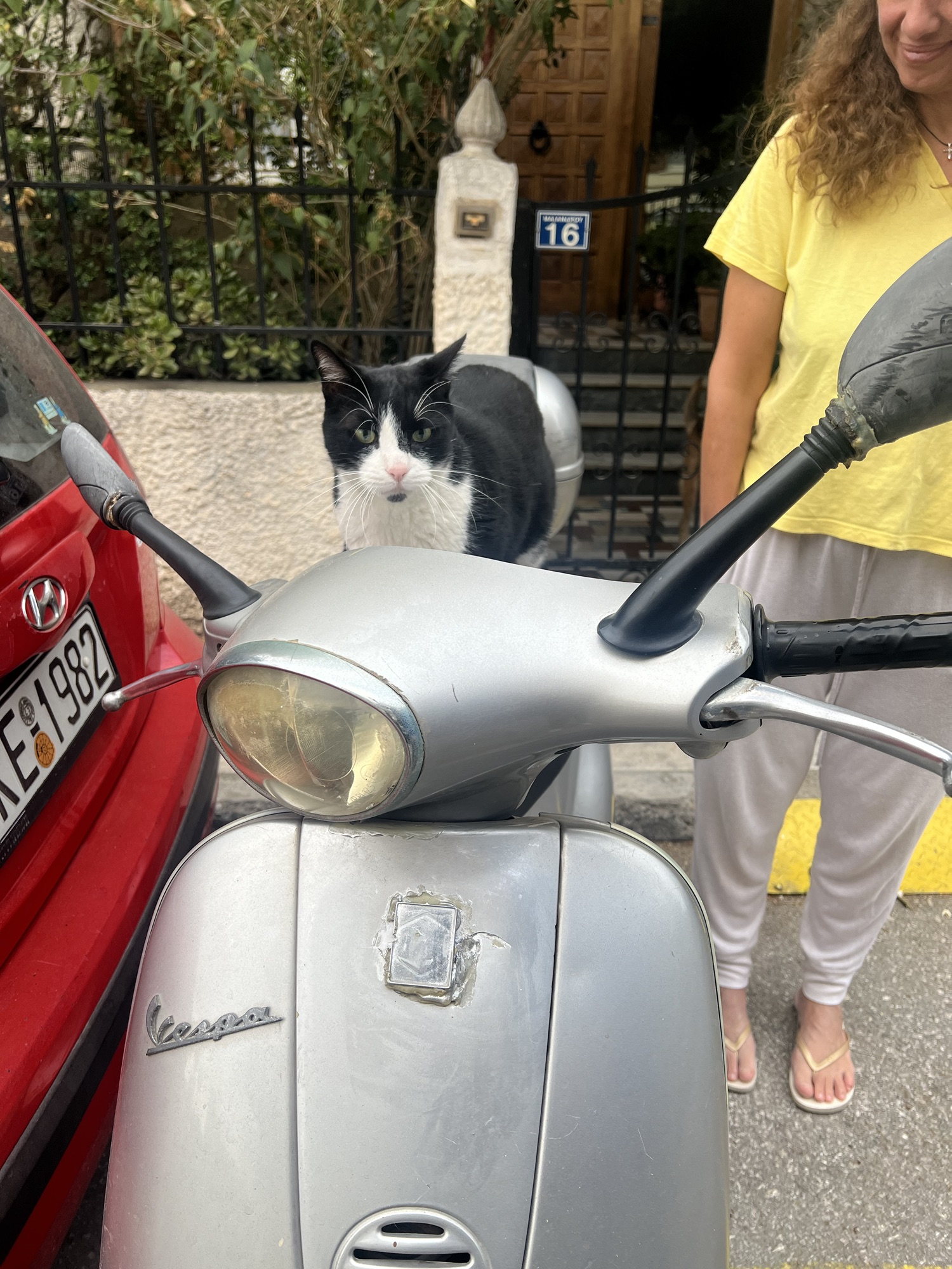 While Finn is good with the pups here, he is not doing well with all of the cats. Allegedly Greece is home to 3 million stray cats. Vacationers and locals feed them but unfortunately most are not fixed, and a lot of local rescues try and help but it’s an uphill battle. For weeks, we had a situation when an overprotective momma with new babies attacked Finn. We had walked too close to her kittens, I guess. For days I would check the cameras downstairs to see if the kittens were anywhere near the front door. I was afraid every time I had to take Finn to pee; it was getting ridiculous. Finally, I decided to take my power back, and I bought a gun- a water gun. I’m not proud of it but it seemed to solve the problem. The kittens are now older, and Finn is now wiser, and I have been able to stop walking with my water gun.