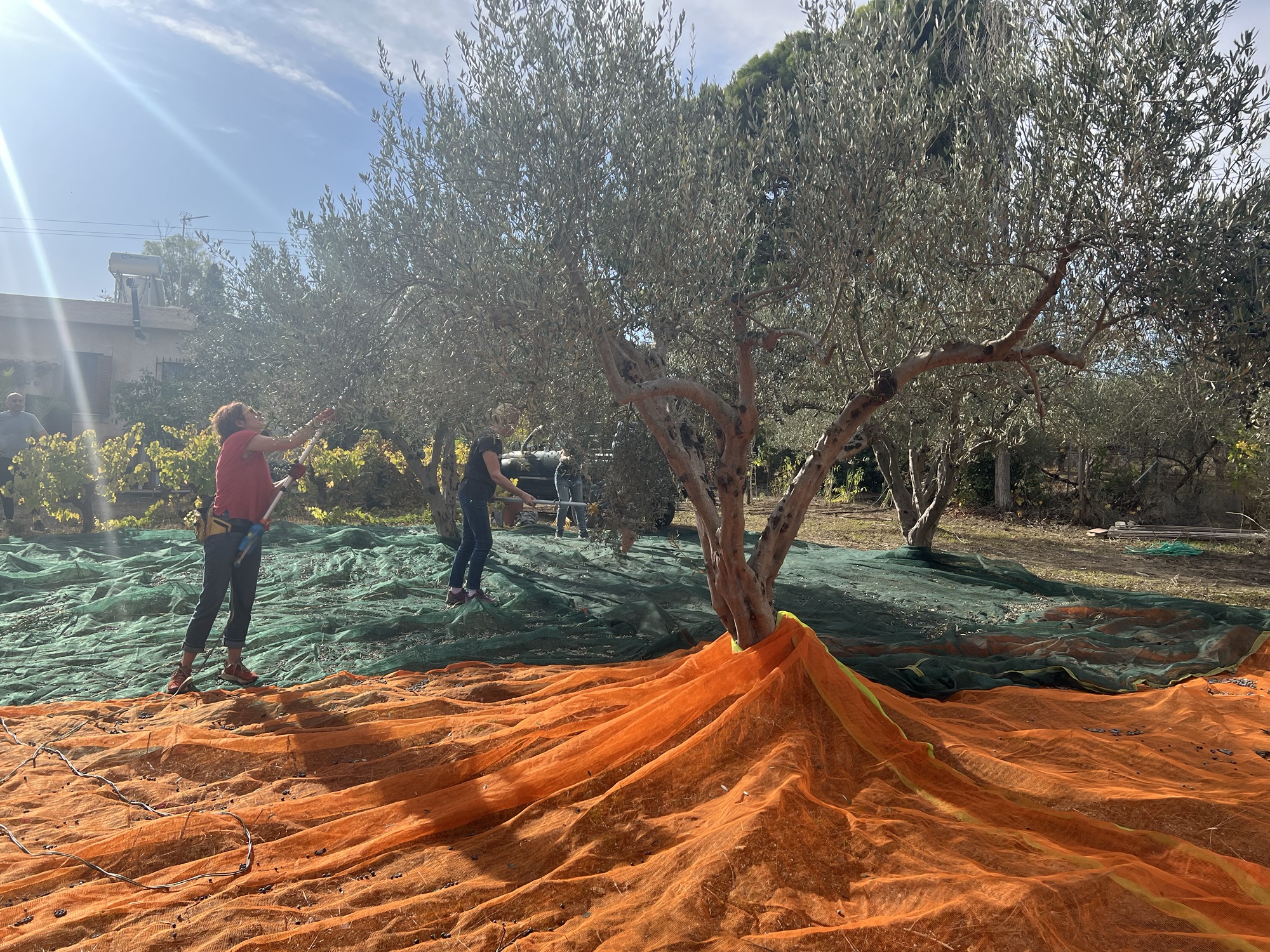 I was recently invited to help my friend Clare harvest her olives. Clare has a lovely farmhouse near Knossos with 56 olive trees on her property. I was so excited to be invited and experience this special Greek tradition. Since living on Crete, I have learned how central to Cretan life olives and olive oil are. Crete is the home to over 30 million Olive trees and olive oil is the island’s top agricultural export. Most families have Olive trees that have been passed down from generation to generation; Jeff has over 140 olive trees himself, left to him by his mom. His family trees are taken care of by a man that takes a percentage of the harvest as his pay and gives the rest to the family. I have heard his trees aren’t ready yet, but we will hopefully visit soon.