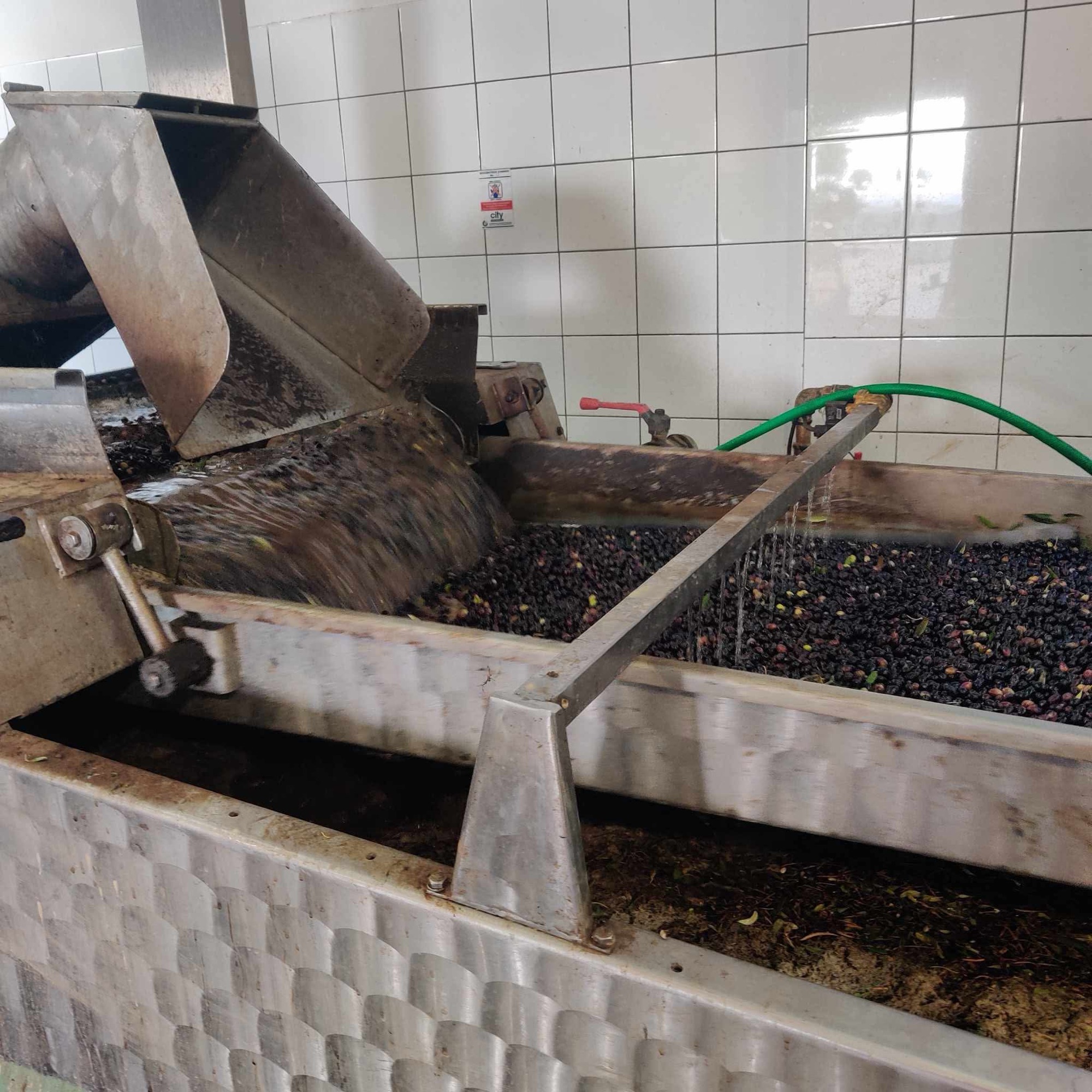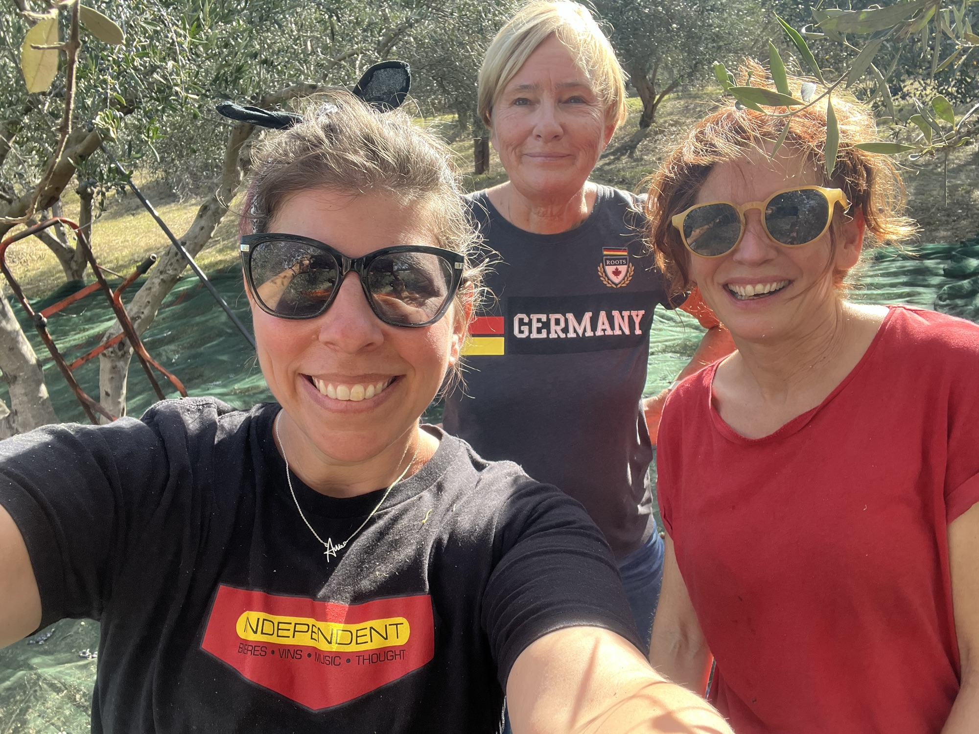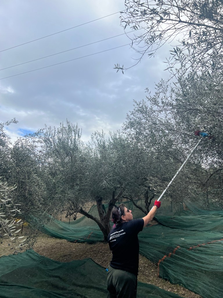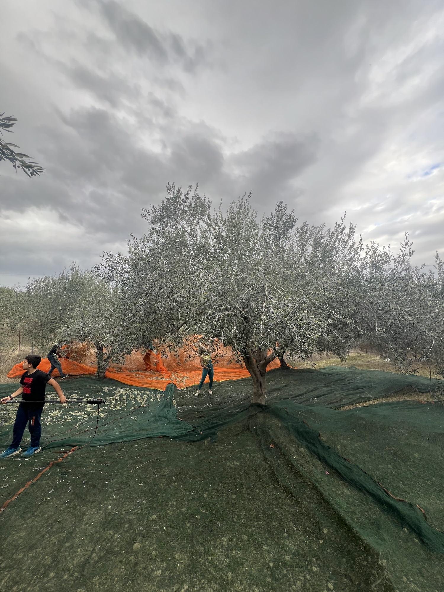 The day started early in the morning, and when I arrived around 9, they were just getting started. It was a bit of havoc at first, but I quickly jumped right in and grabbed one of the electric rakes that spin, shaking the olives free from the tree. I was taught to run the rake along the branches, above and below several times to get all of the olives off. I recommend wearing sunglasses or goggles, the olives can come flying at you from everywhere.